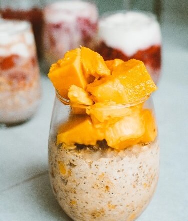 Place dry ingredients in food processor and mix till fine. Add water till moist and crumbly. Spread out crumbles in cookie sheet and bake at 300 until golden, stirring often. Spread crumble topping evenly on top of mangoes and press down slightly. Place in refrigerator to cool. Delicious served with Rice Cream.